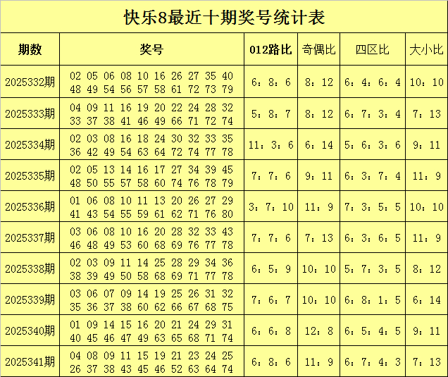 福彩闲散8第2025341期开奖回来:04 08 09 11 15 19 21 23 24 25 26 37 38 43 45 46 52 63 64 74,其中奖号012路比为6:8:6,四区比为6:7:4:3奇偶比为11:9,大小比为7:13。